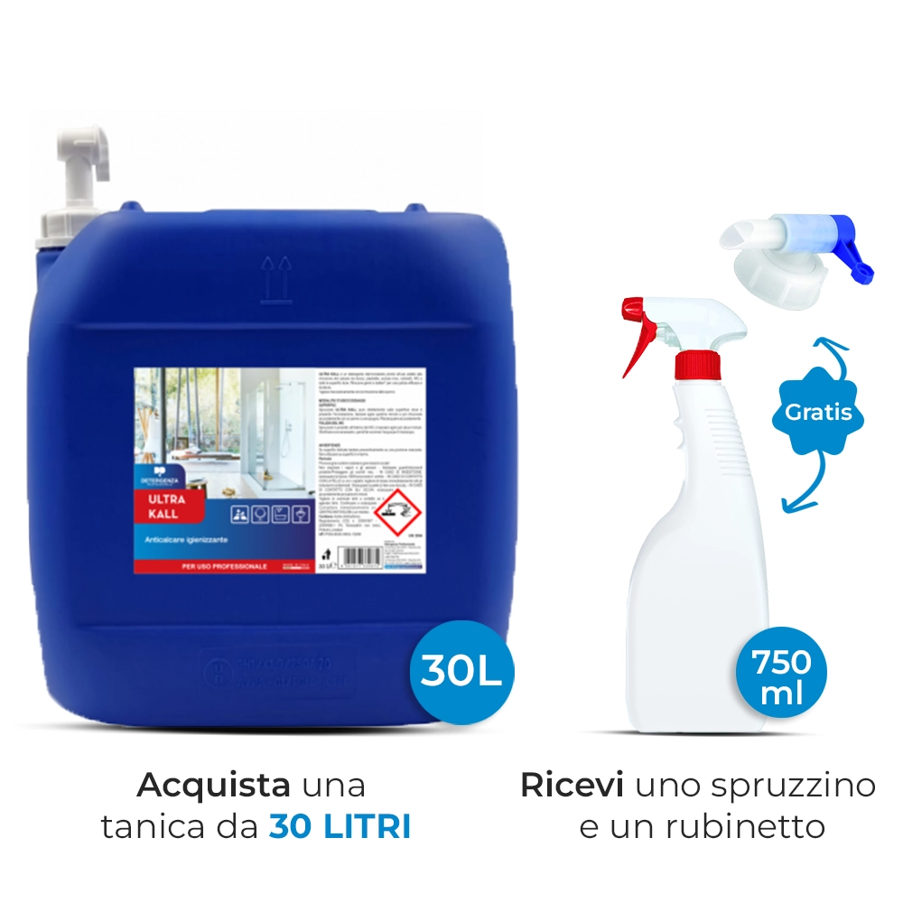 Elimina calcare e batteri con Ultra Kall: l’anticalcare igienizzante professionale per una pulizia completa e sicura.